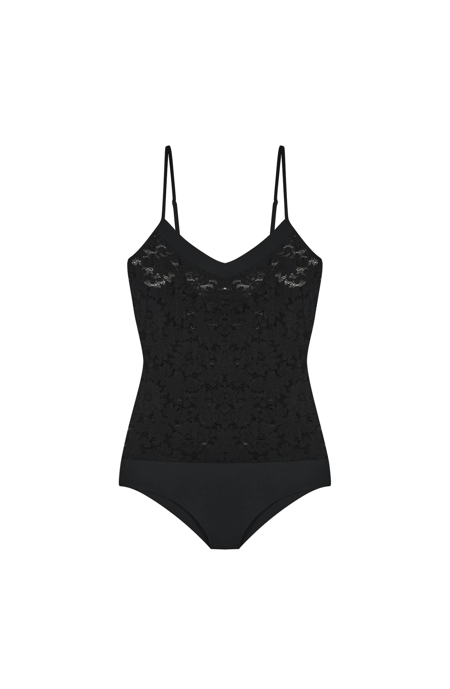 Body tanga à bretelles fines réglables, décolleté en V, bas du body en Bonded.