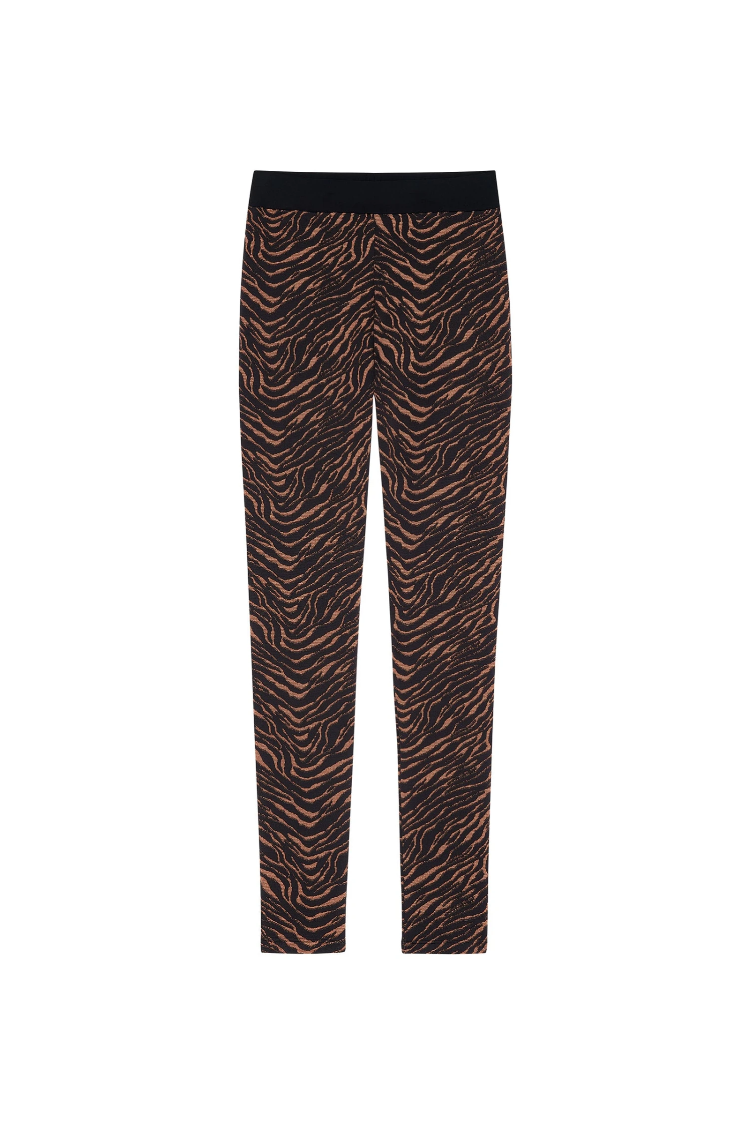 La maille extensible et chaude du legging noir BILIE dessine une seconde peau tout en douceur. Sur des nuances noires et cuivrées, les motifs sauvages de son imprimé tigré lui donnent une allure indomptable pour une silhouette libre et insoumise.