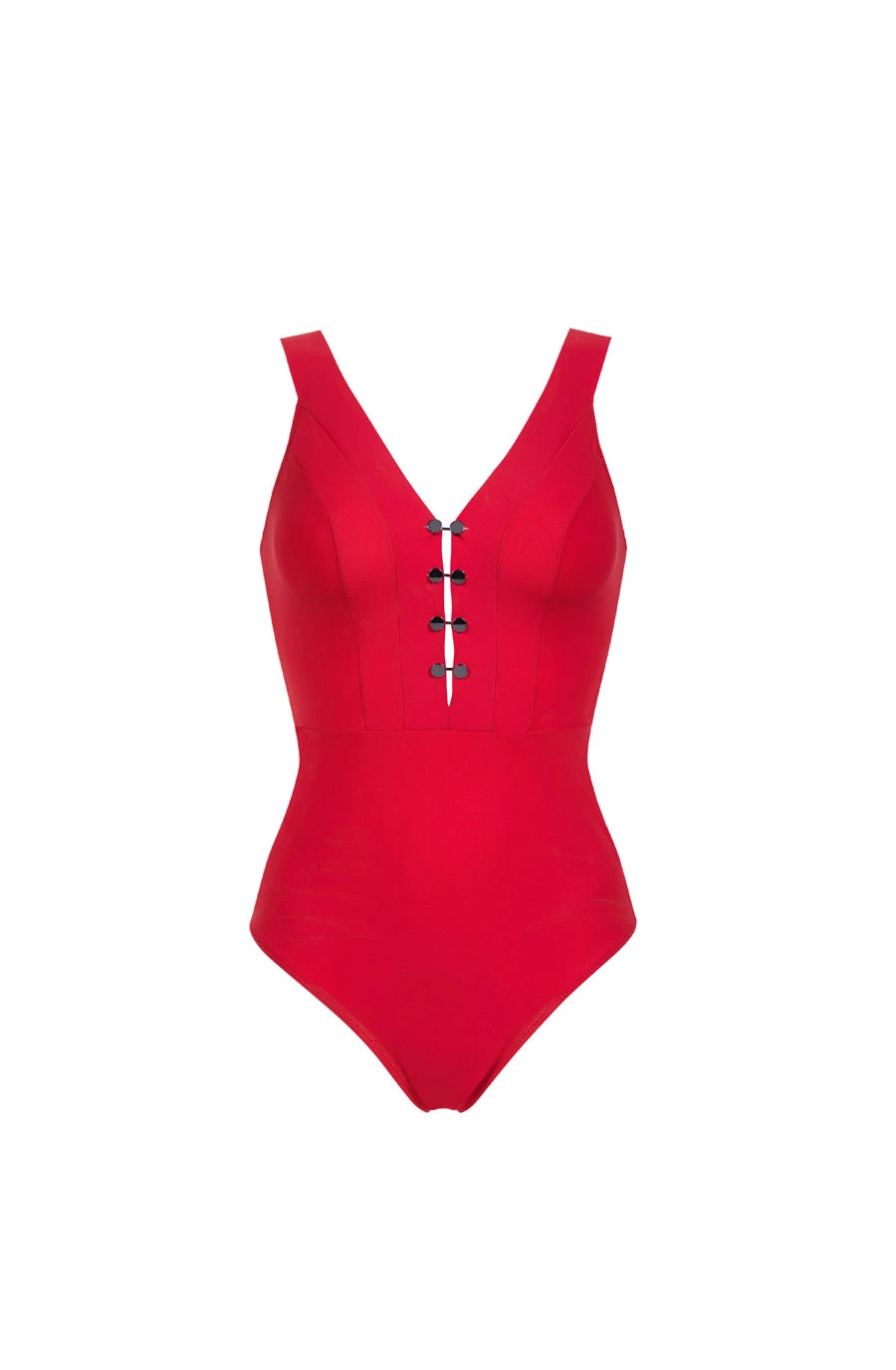 Le maillot de bain BONNIE red rĂ©invente le maillot 1 pièce nageur en lui donnant un nouvel Ă©lan chic très fĂ©minin ! Son dĂ©colletĂ© Ă boutons ou Ă lacet amovibles lui donne de l’Ă©lĂ©gance.
