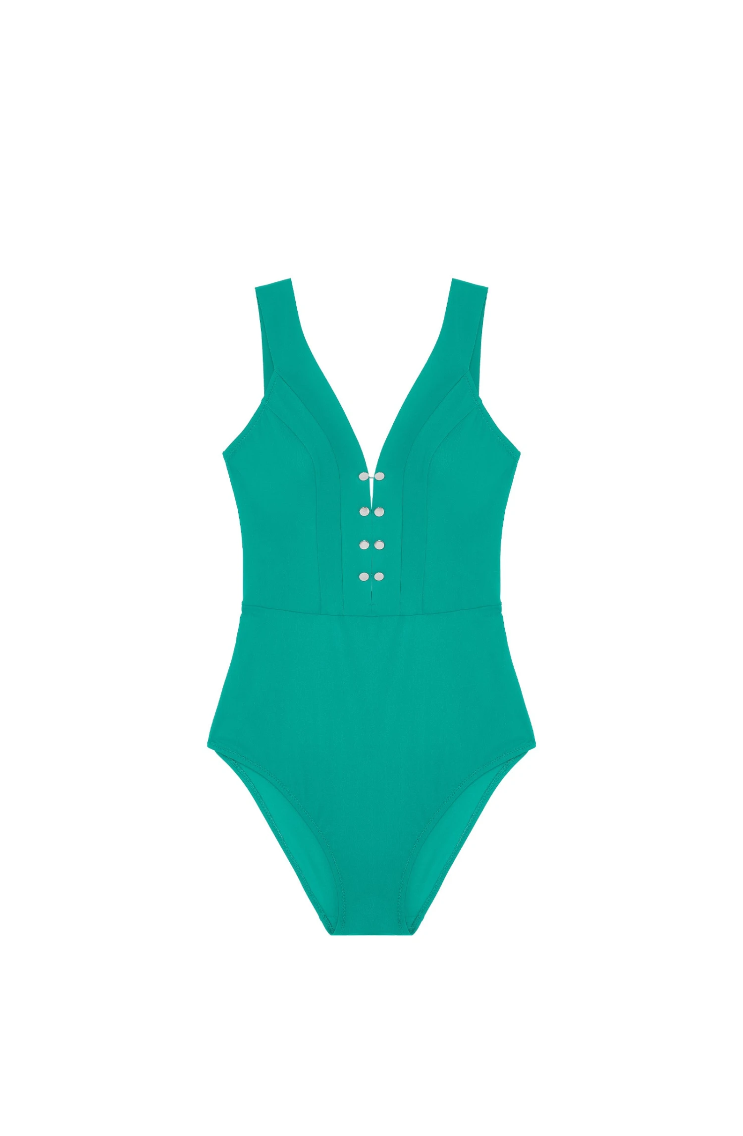 Intemporel et indémodable, le maillot de bain BONNIE convient à toutes les morphologies. Il assure un confort et un maintien parfait . Son décolleté se pare avec raffinement de bijoux boutons de manchette pour souligner avec chic et volupté la poitrine. Un vert émeraude d’une fraîcheur envoûtante.