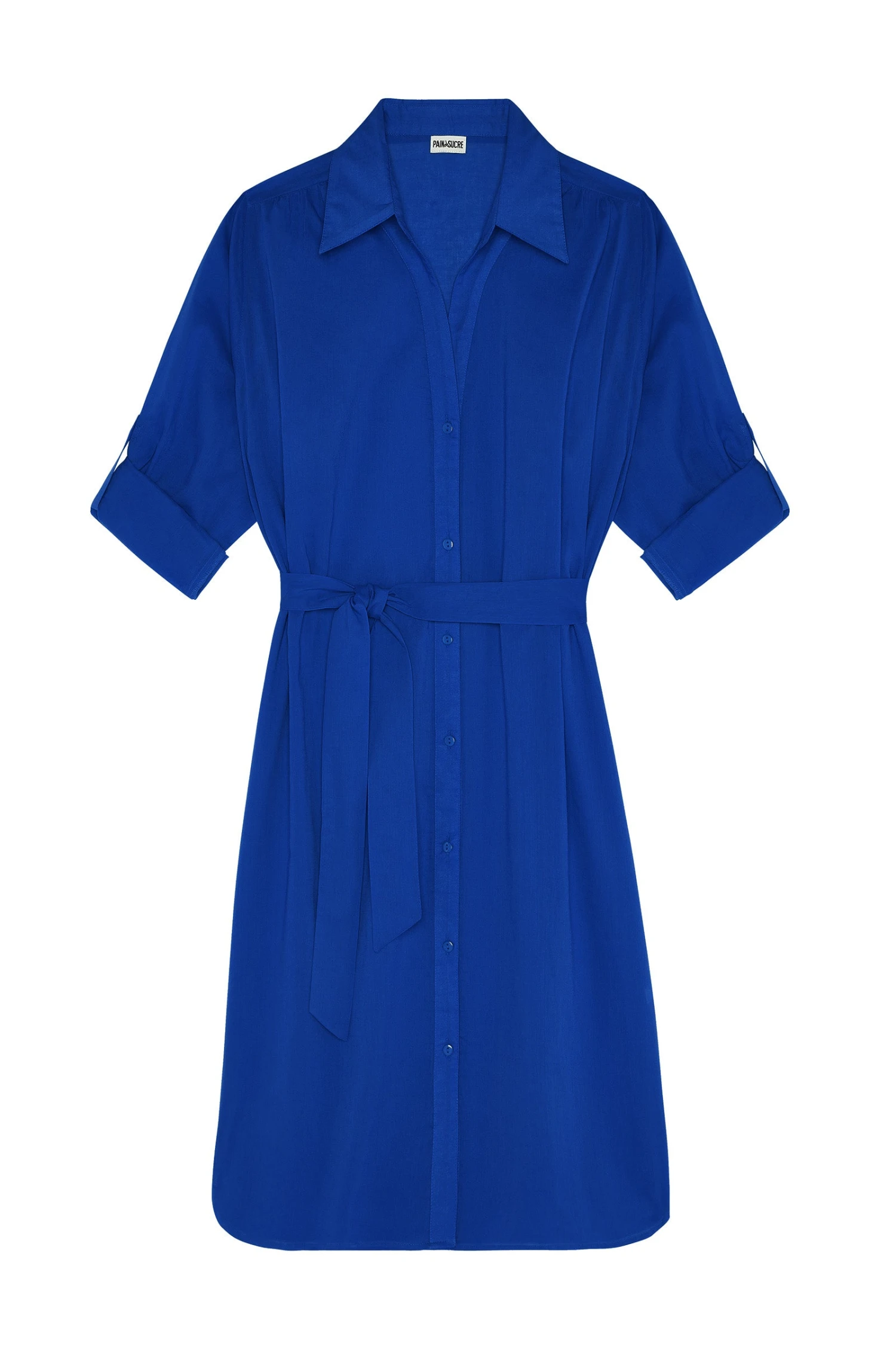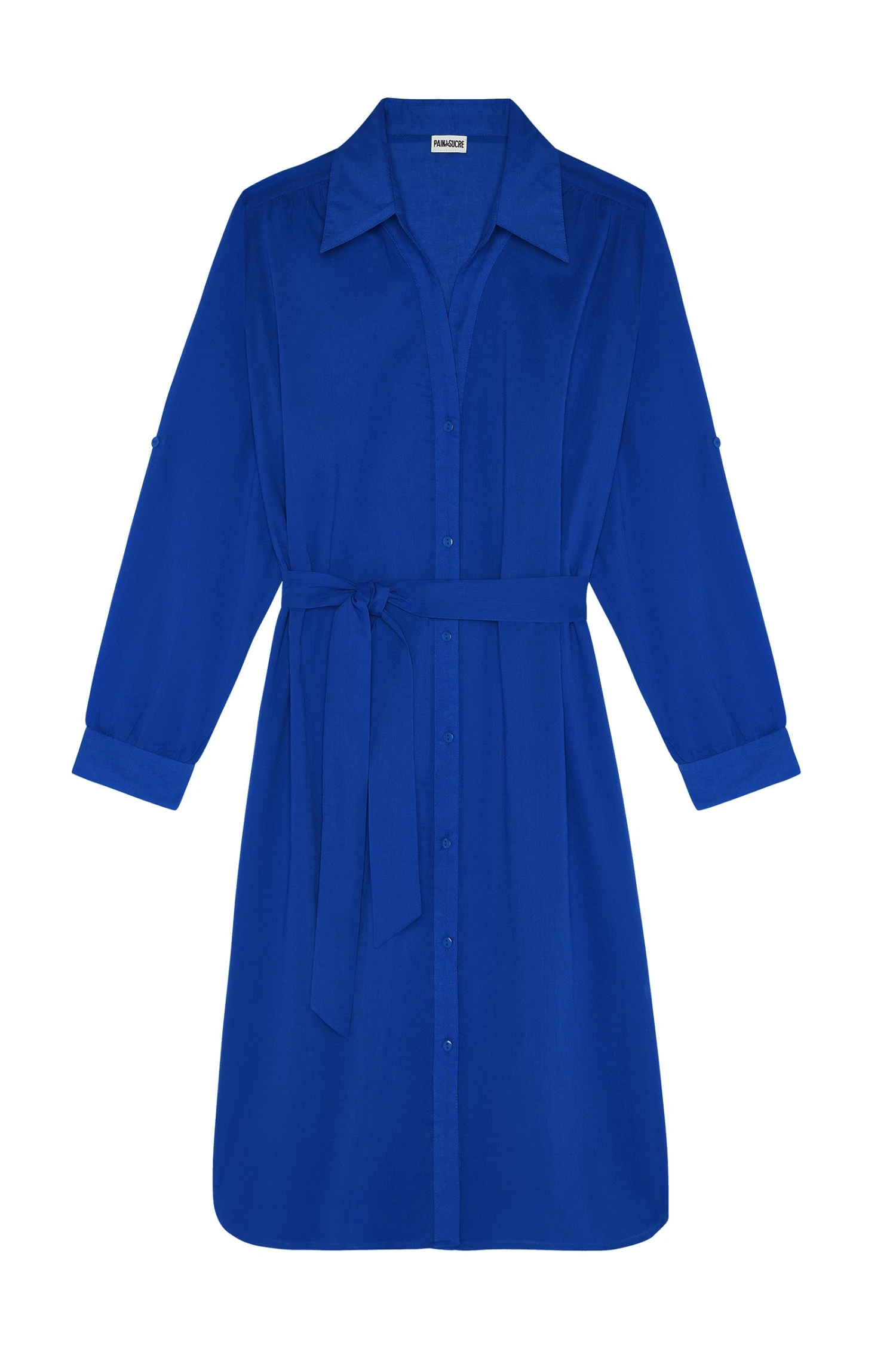 Avec sa coupe droite oversize et ses longues manches qui peuvent se retrousser, la robe chemise ceinturée CASSANDRE s’adapte à toutes les morphologies. Habillé et décontracté, ce basique se porte en toutes occasions. Le coloris océan, un bleu abyssal qui donne envie de prendre le large.