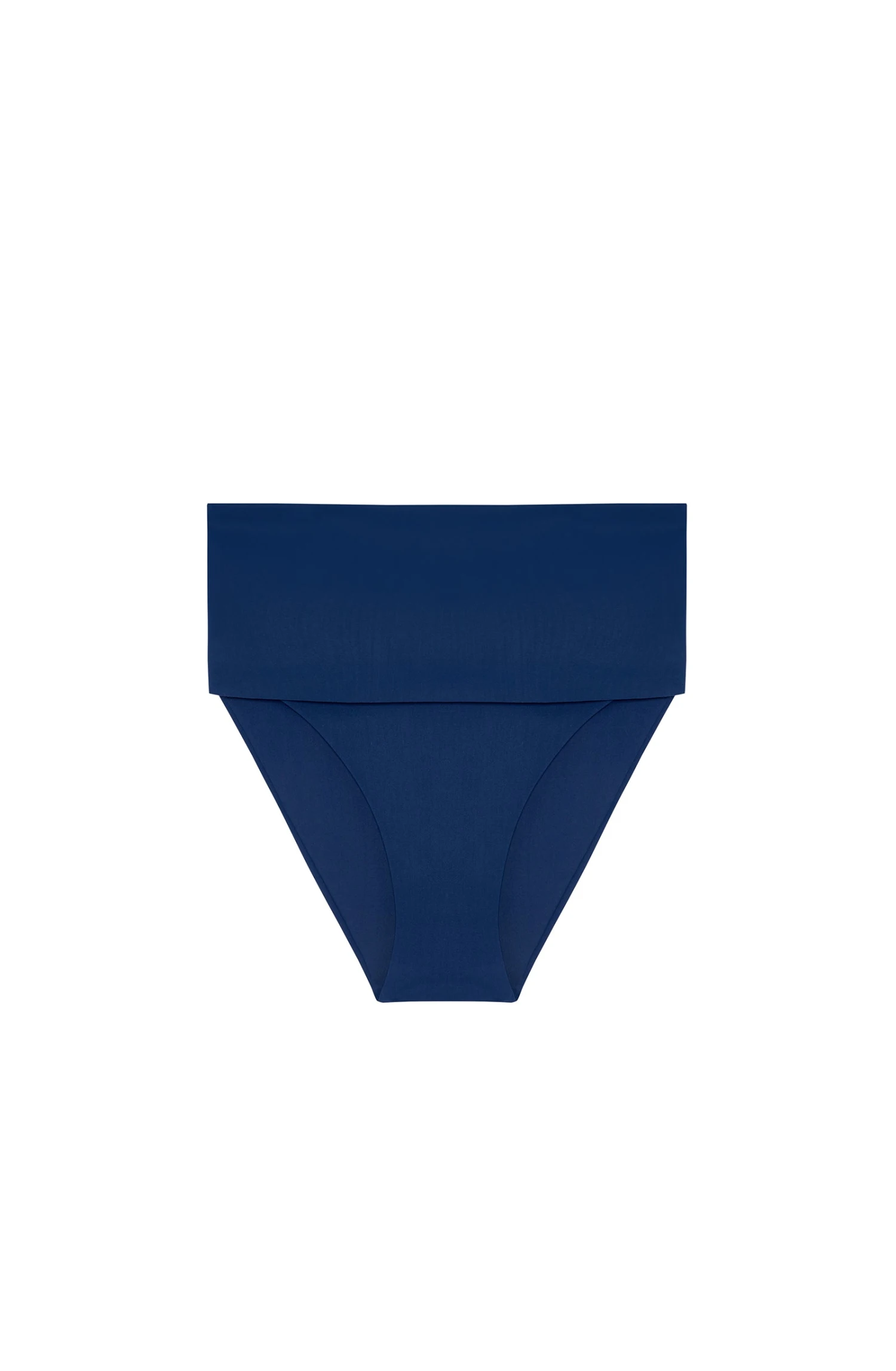 Bas de maillot culotte montante gainante avec très large bande en « bonded » découpe free-cut (monte jusque sous poitrine). Taille rabattable. Forme un tankini avec la brassière NAOMY. Entièrement doublé.
