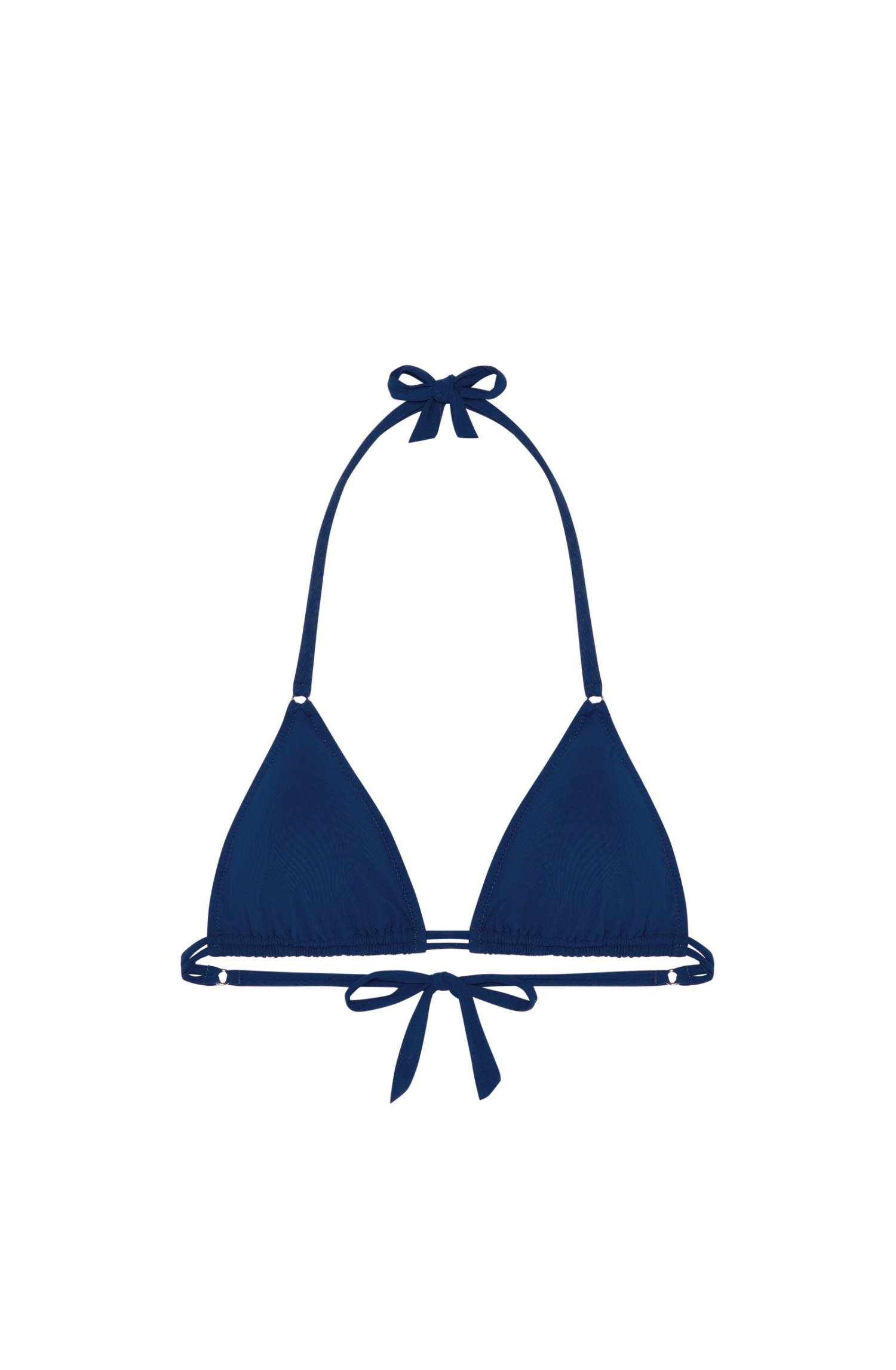 Le haut de maillot de bain triangle HELIA assure un maintien impeccable grâce au double lien coulissant. Ses coques amovibles donnent subtilement du volume au décolleté. Détail sophistiqué, les anneaux argentés au niveau des bretelles soulignent avec raffinement les lignes épurées de ce modèle indémodable. Un bleu nuit intensément profond.