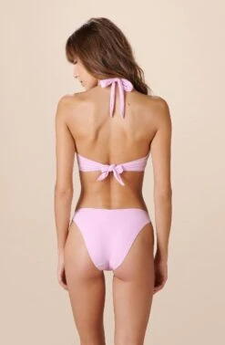 Maillot 1 pièce dos nu. Noué nuque. Grand décolleté plongeant. Haut de maillot tout en voile plissé, monté en double. Bas de maillot en microfibre entièrement doublé, avec taille en fourreau.