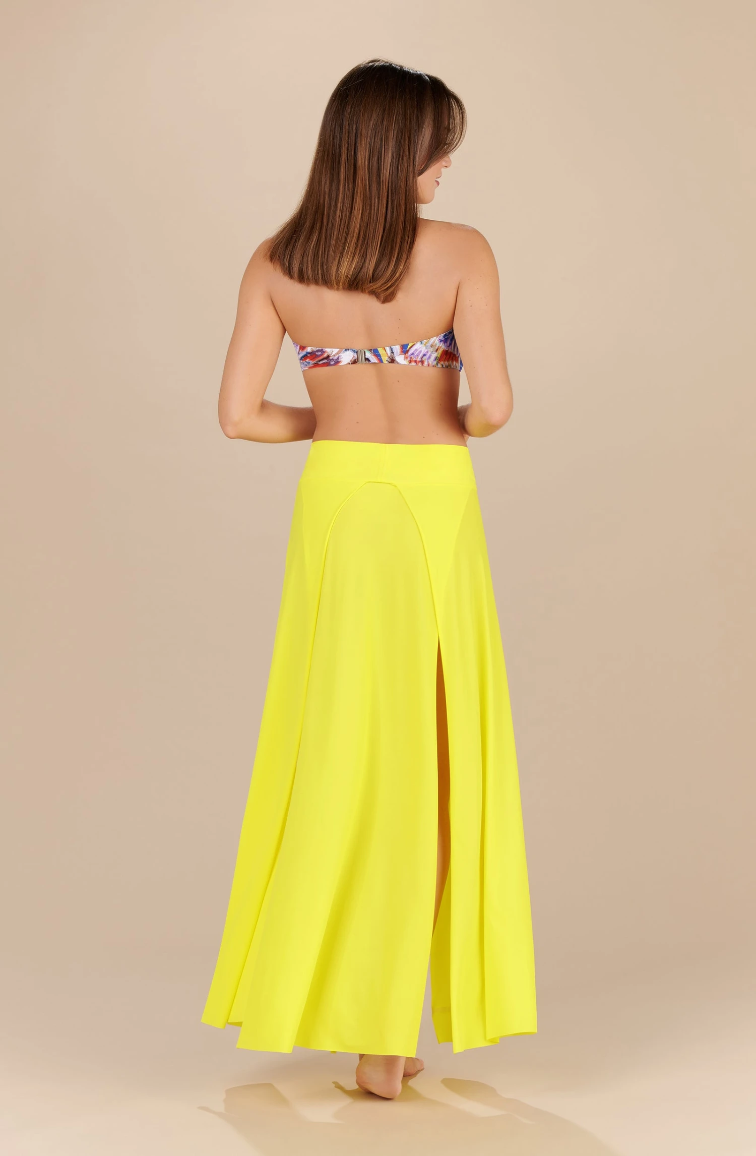 La jupe fendue JAX revisite les codes de la classique jupe longue évasée. Ouverte par quatre pans, son voile léger dévoile les jambes au rythme des mouvements. Aérienne, cette pièce habille avec caractère une tenue de plage.