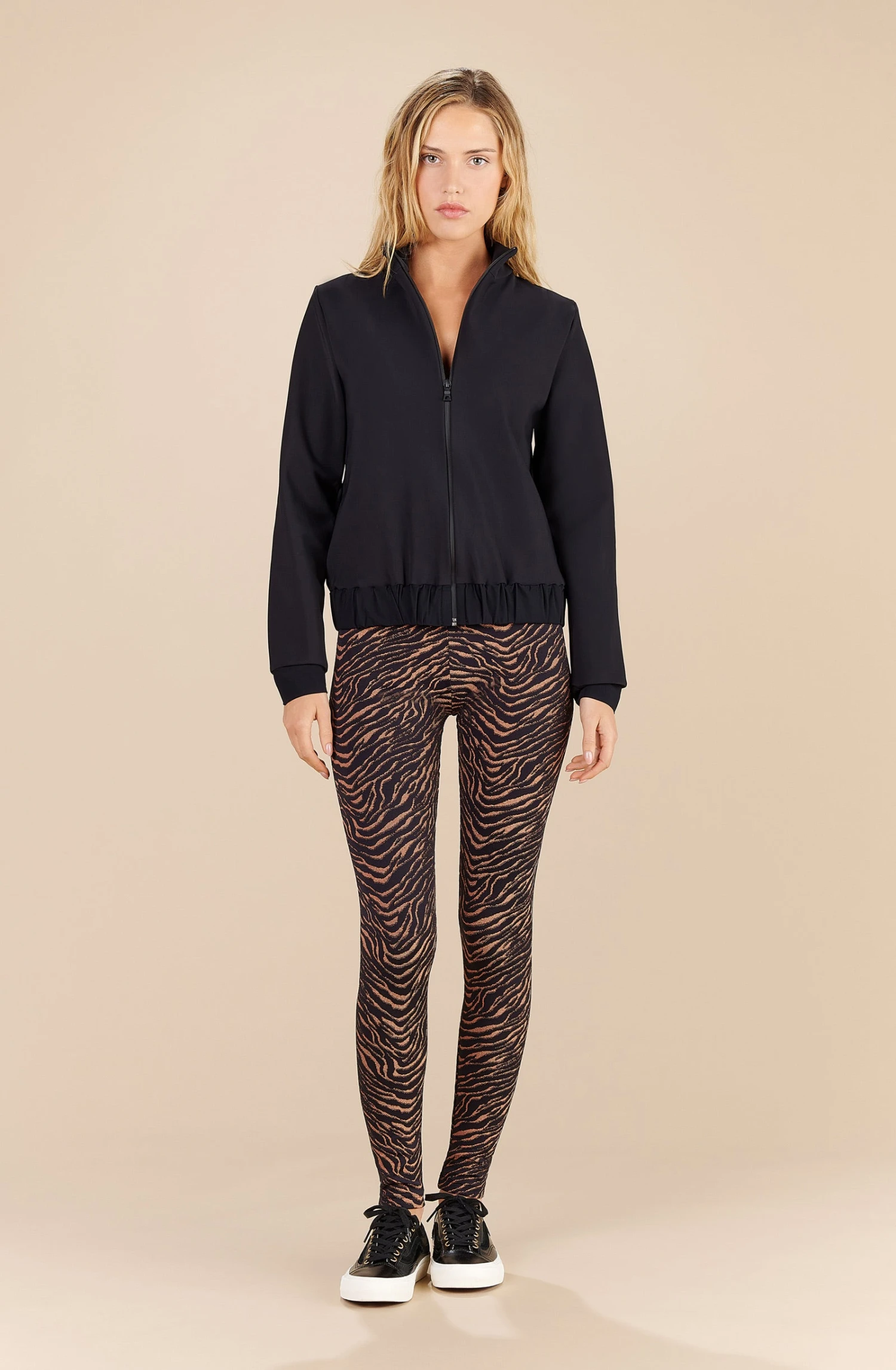 La douce polaire de la veste JIMMY se porte sur une tenue sporty, la brassière graphique BASS et son legging assorti SHEMSY. Dans un esprit plus sauvage, le legging se pare de l’imprimé TIGER LUREX. Pour illuminer et réchauffer une froide journée d’hiver, le top TROY en dentelle laquée dorée se porte avec le pantalon HAILEY qui se double comme le sweat d’une polaire.