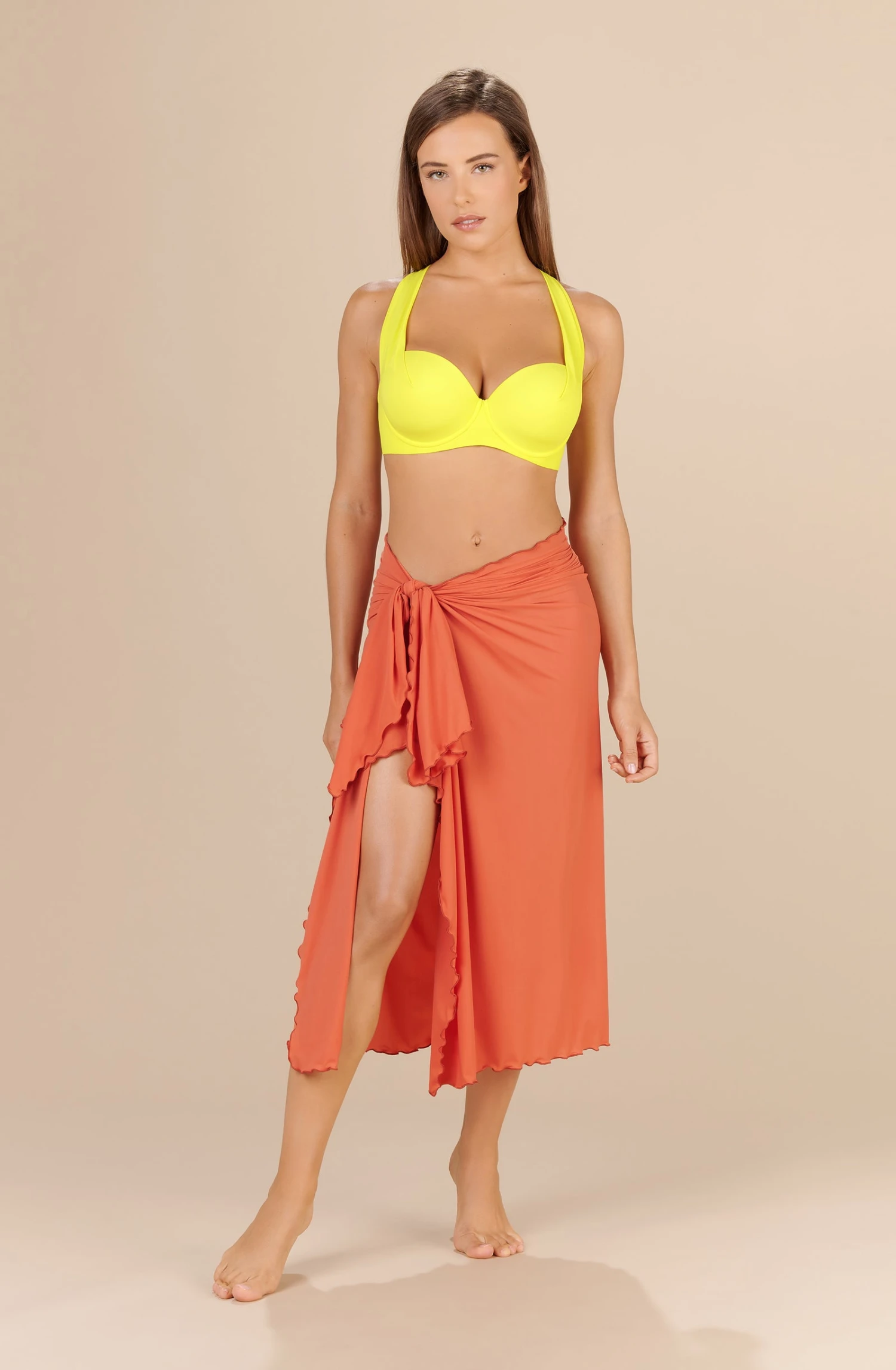 Pièce essentielle de votre valise, laissez-vous séduire par le paréo paprika KALIS long multi-positions en voile. Son effet volanté sublimera votre beauté olympienne. Souple et vaporeux, il se plie à vos désirs et fera de vous la déesse de votre destination ! Son coloris sublimera votre teint, qu’il soit hâlé ou porcelaine…