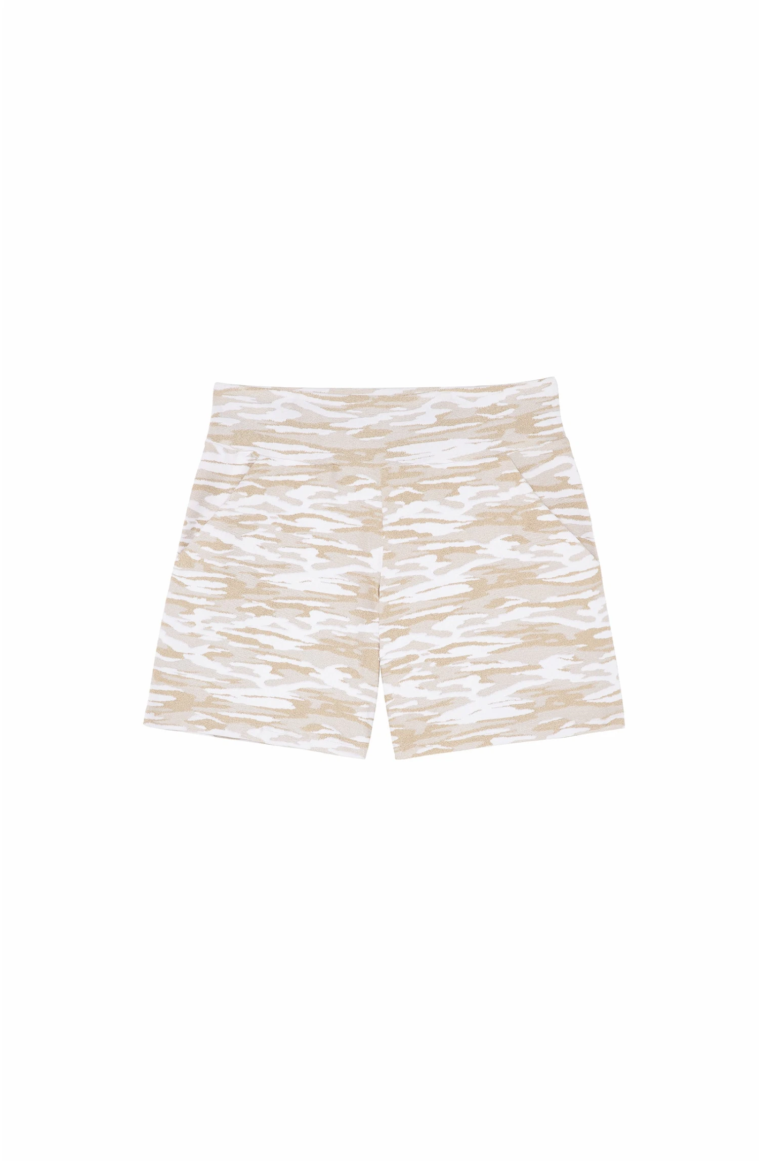 Casual à l’esprit sportswear, le short ample MARLOW se porte en toute circonstance. Avec son imprimé CAMO, qui se décline sur des teintes sable doré, on est prête pour aller affronter des heures de farniente sur la plage. On aime le motif camouflage, une version féminine, chic et pailletée, de l’imprimé militaire. La maille en jersey est ultra confort et la coupe large nous laisse libre. Décontracté et élégant, on adore se camoufler dans notre short MARLOW.