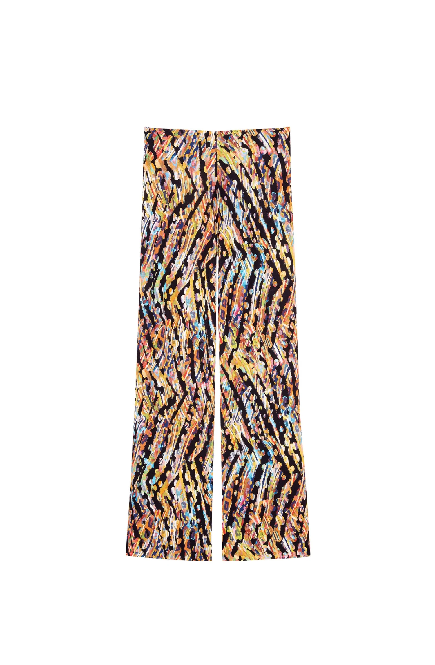 Confectionné en voile de lycra, le pantalon MYLA offre une liberté de mouvement. Il s’associera parfaitement à un maillot de bain assorti pour un total look. L’imprimé MELTING SPOT, une vision hallucinante de peaux de bêtes multicolores en hommage au Street Art de Basquiat.