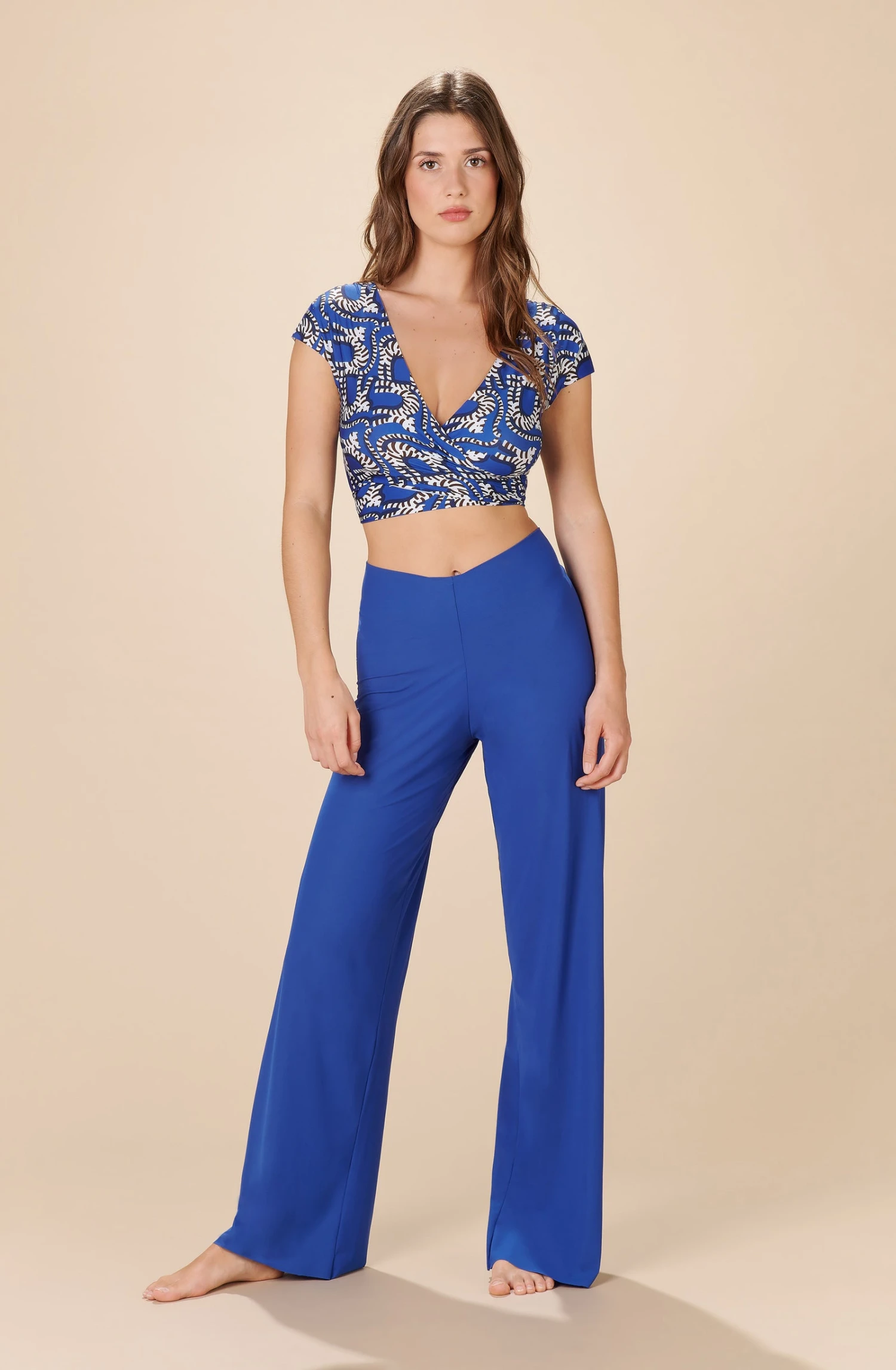 Le pantalon ample en voile de lycra MYLA est un indispensable. Il offre un confort incomparable et procure une liberté totale de mouvement. Sa taille rabattable s’ajuste avec grâce à toutes les morphologies. Le coloris océan, un bleu abyssal qui donne envie de prendre le large.