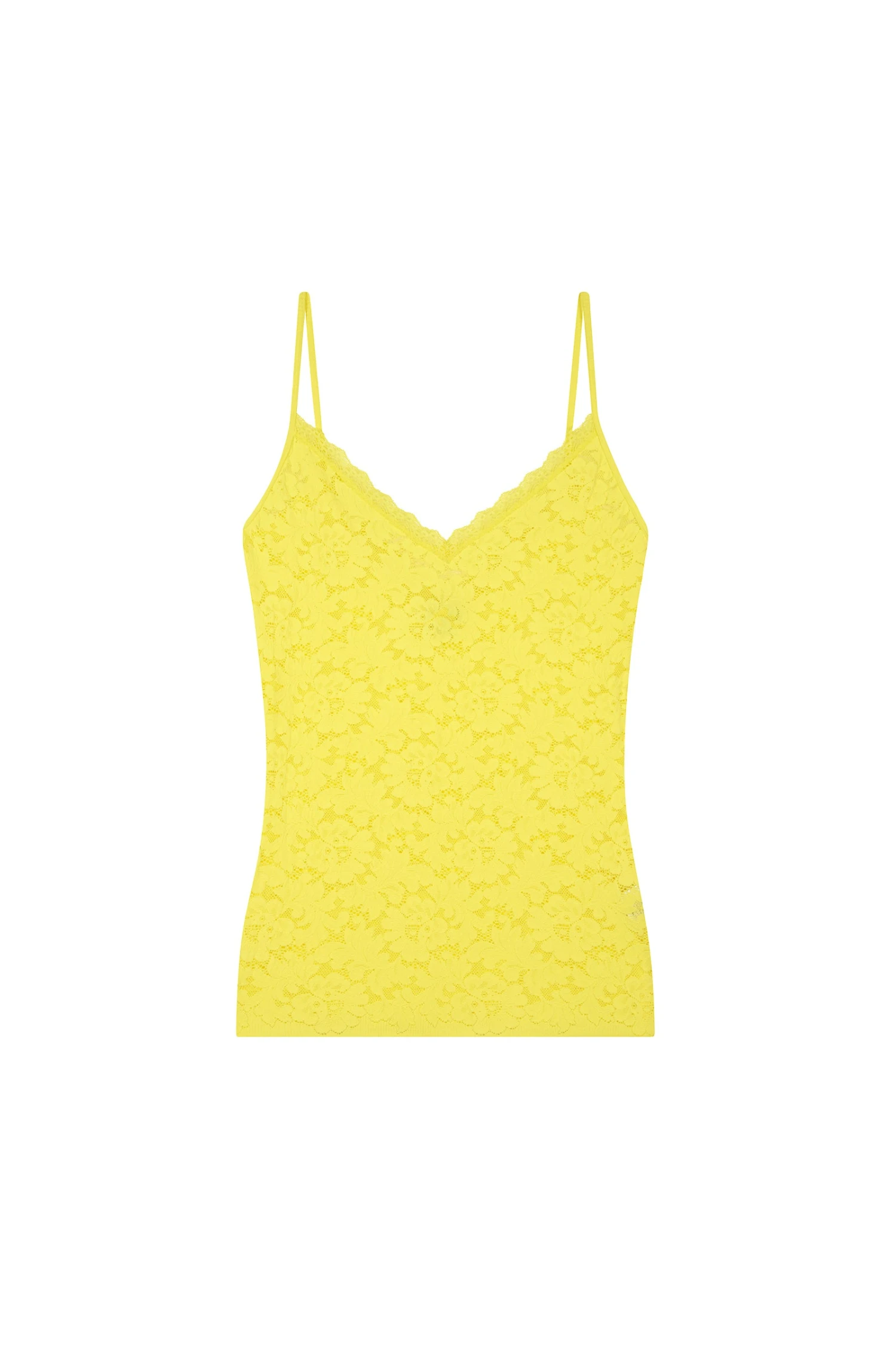 Top bretelles fines en dentelle, décolleté en V devant et dos.