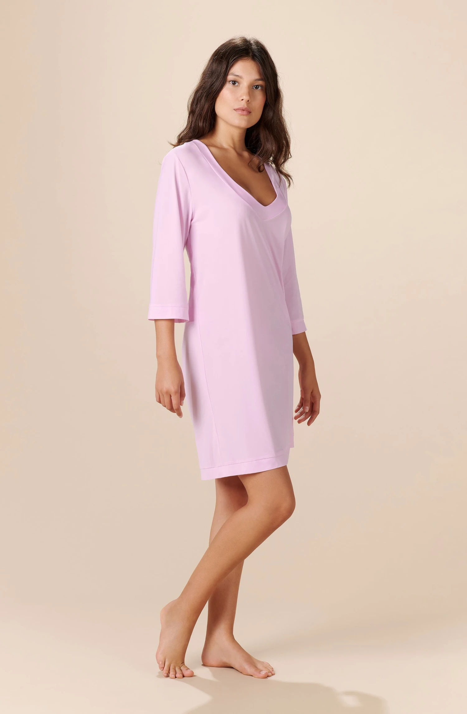 En voile de lycra, NELLY est une tunique ample très légère et agréable à porter. Avec son décolleté en V échancré, elle met en valeur le décolleté en laissant libre la silhouette. Un rose doux pour un look intensément féminin.