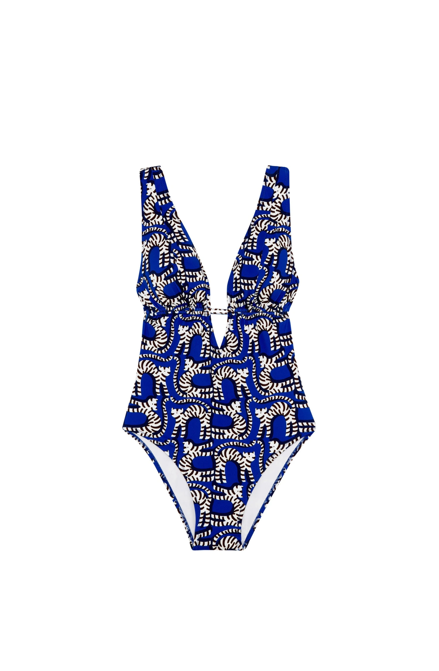 Avec ses larges bretelles et son double lien permettant de jouer sur la profondeur du décolleté, le maillot de bain une-pièce PEPA sublime avec audace et féminité la silhouette. L’imprimé GOTCHA, d’un bleu outremer hypnotique qui emmène dans un dédale de formes félines.