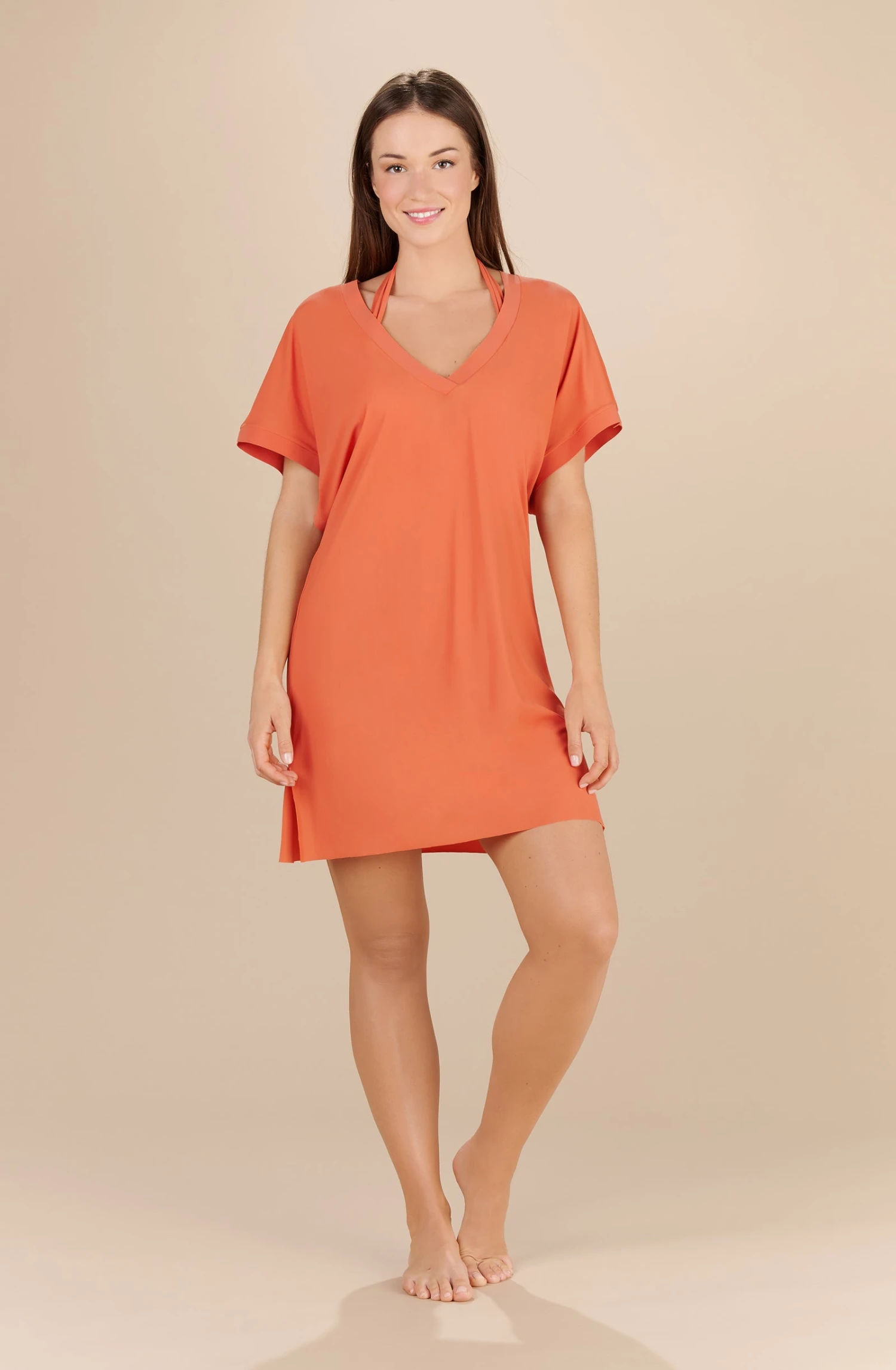 Pour flâner sur la plage ou chiller à la maison, on adopte sans hésiter la tunique ample en voile léger PRETTY paprika. Fluide et casual, elle se porte facilement grâce à sa coupe évasée, parfaite pour dissimuler nos petites rondeurs ! On aime la simplicité de sa forme et les finitions free-cut sur le bas.