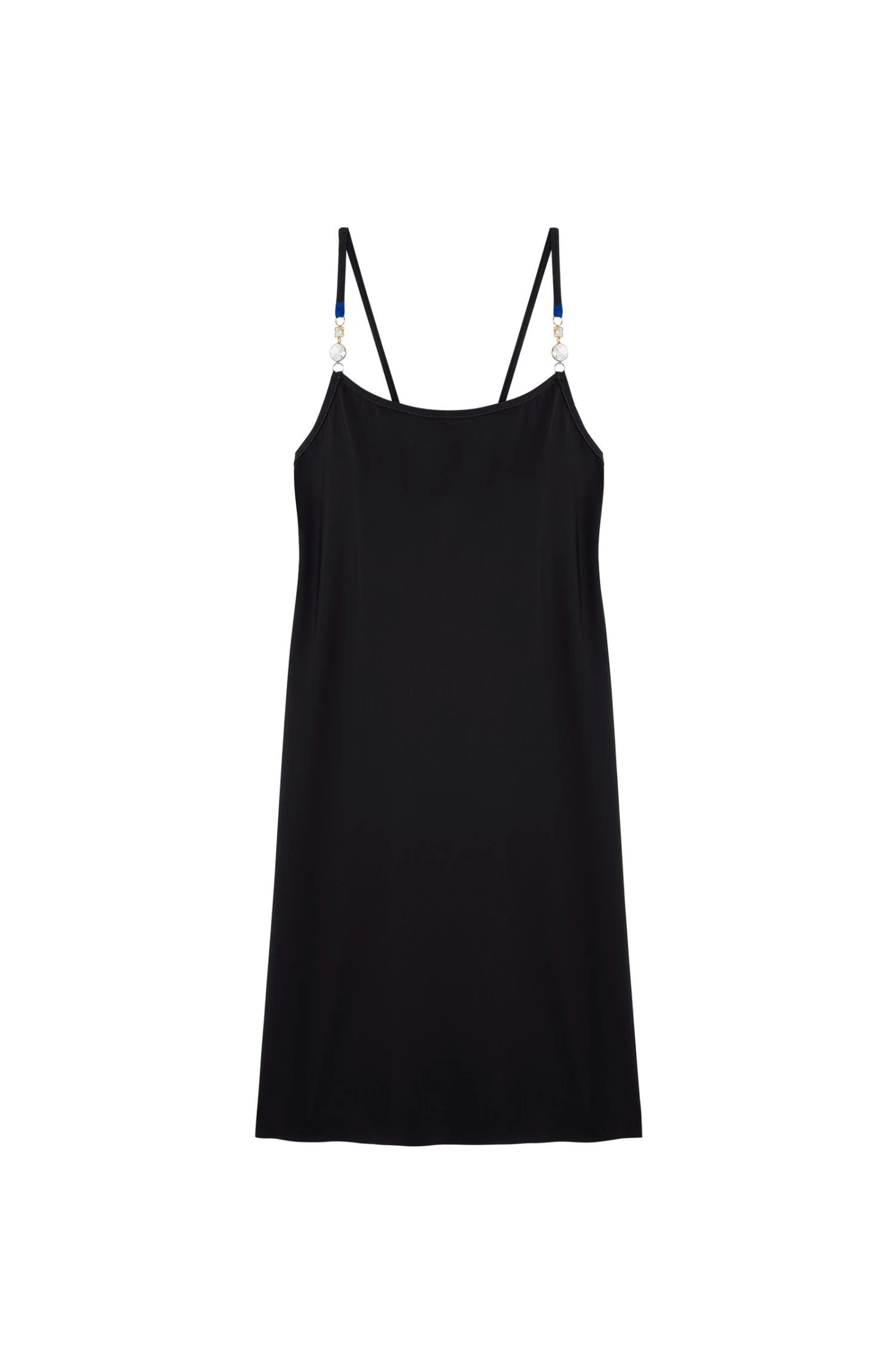 Confectionnée dans une matière fluide et légère, la robe droite RAQUEL est très agréable et simple à porter. Ses bretelles s’accessorisent de bijoux en verre à facettes multi-formes. Elles se portent de plusieurs façons : attachées aux épaules façon brassière, croisées dos ou nouées nuque. Indémodable et toujours élégant, le noir met en valeur toutes les morphologies.