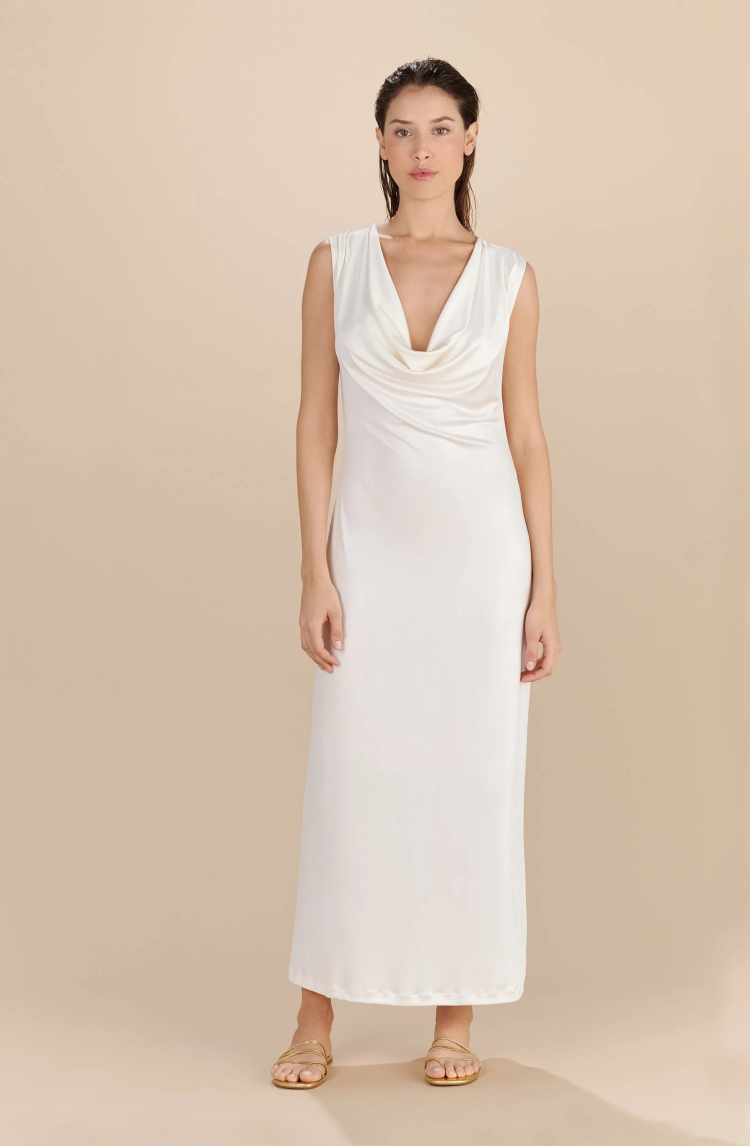 On tombe sous le charme de REANNE, une longue robe satinée couleur nacre. Intensément lumineuse, son col bénitier se pare d’une délicate guipure. Porté devant, son profond décolleté donne du volume aux petites poitrines. Dans le dos, notre maxi dress nous offre une divine chute de reins. On craque pour la fluidité du tissu et le beau tombé de cette pièce doublée de tulle chair. Une robe toute en légèreté qui promet de faire sensation.