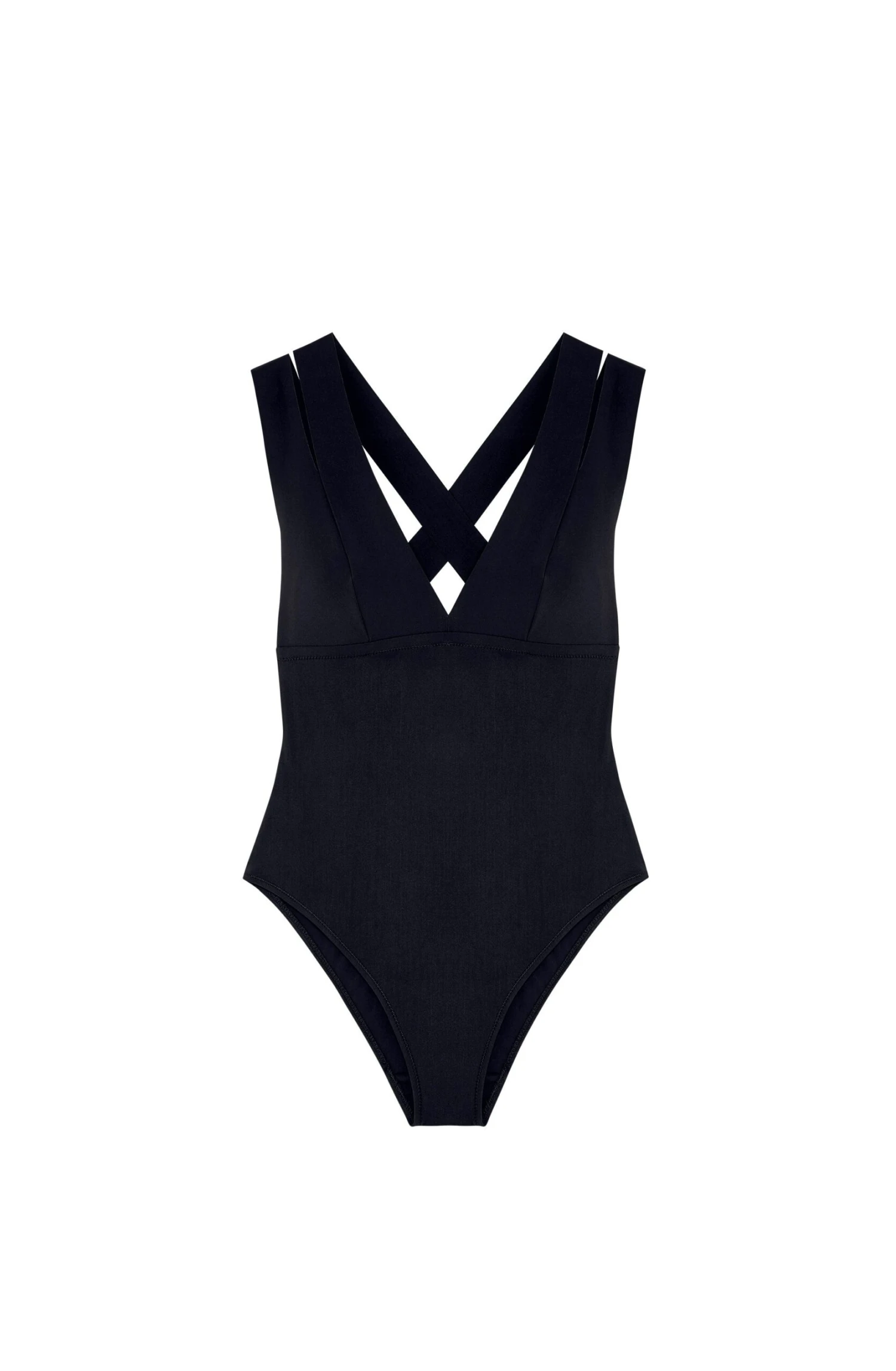 On craque pour ce nouveau maillot nageur so chic RESLI noir. Finesse des formes, allure épurée, ses doubles bretelles en bonded assurent un vrai maintien. Que dire de son dos avec ses larges bretelles entrecroisées, un modèle qui se porte aussi bien en body avec une jupe longue ou un jean. Le it de l’été.