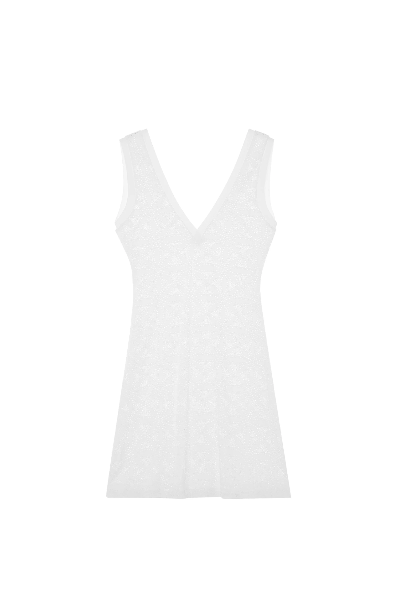 La robe courte RIKA arbore des rosaces graphiques inspirées des détails architecturaux d’Aruba. Sa coupe droite et sa forme débardeur présentent des finitions en bonded qui soulignent l’encolure en V. Un blanc pur et lumineux.