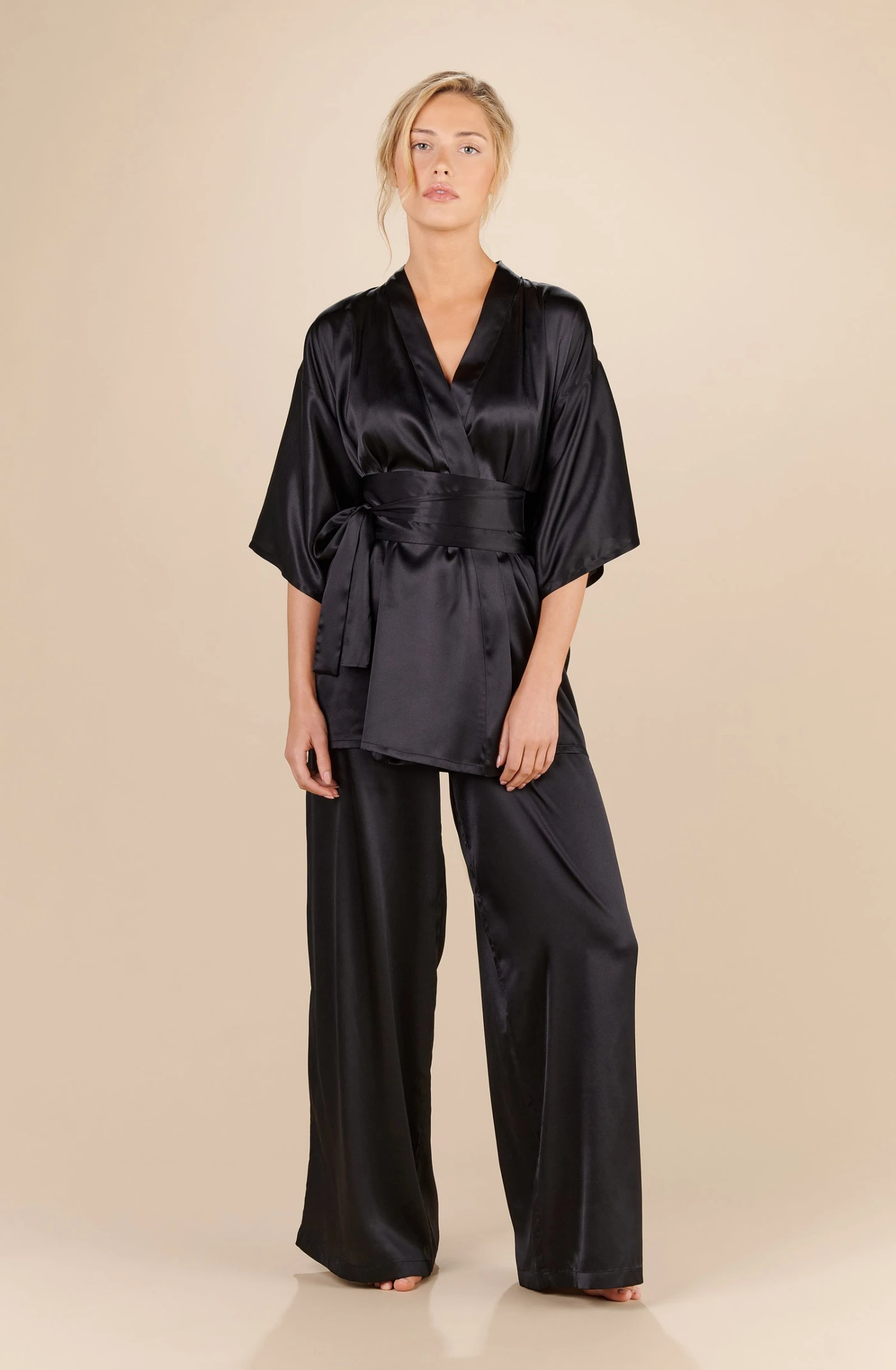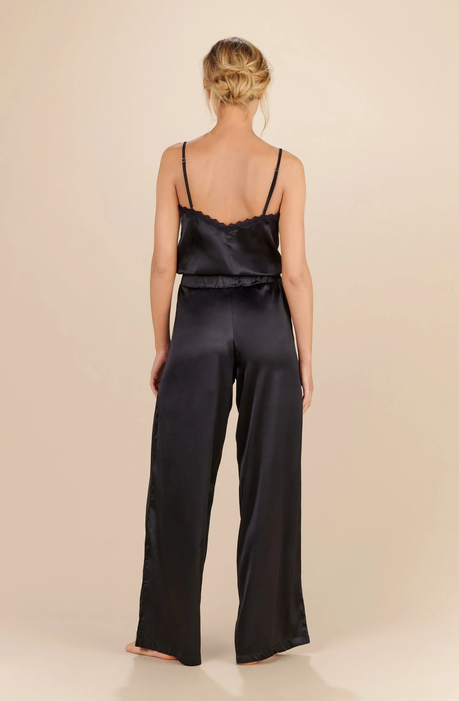 Pour se parer de soie noire, le pantalon TOM se marie avec le caraco ELFY et le kimono à nouer DELILA. La fluide viscose du top à bretelles NAHRA noir est aussi élégante que confortable. Pour jouer des matières et des coloris, le tulle chair du soutien-gorge AIMEE et du shorty DESIREE révèle en toute discrétion de délicates broderies sur des nuances marines.
