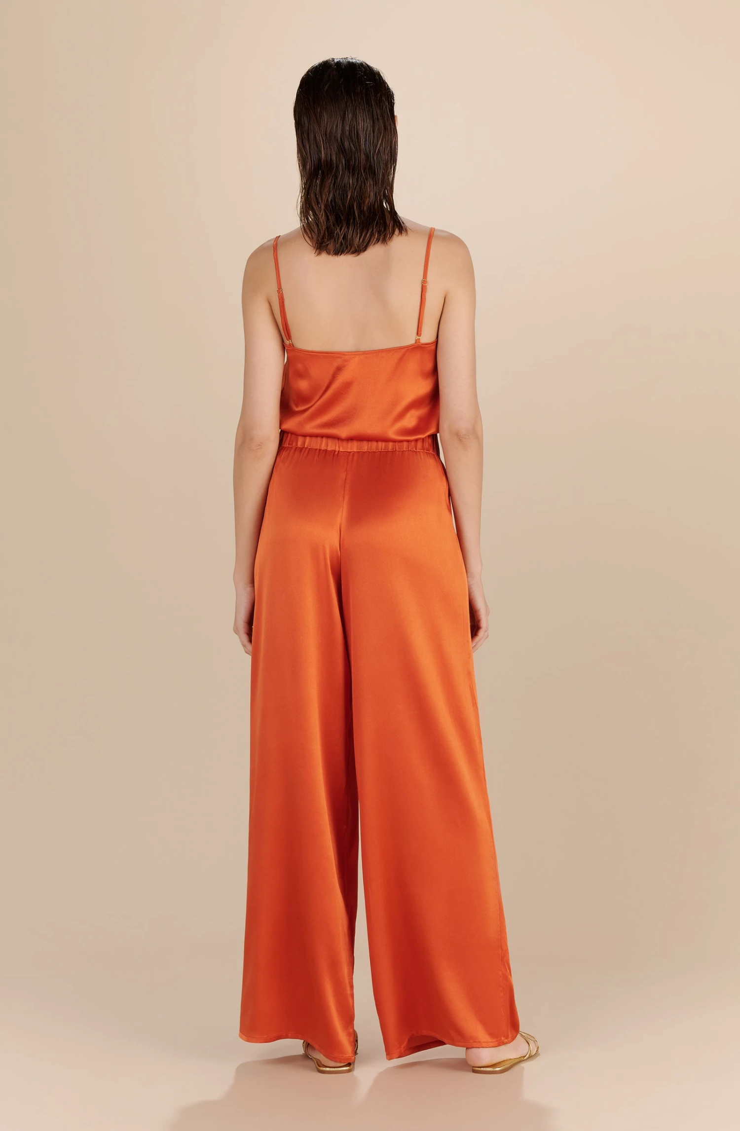 Pour des soirées douces et raffinées, on se laisse charmer par le pantalon large TOM paprika. Avec sa coupe ample et sa taille froncée avec un élastique, ce pantalon en soie stretch est d’un confort incomparable. Légère et chic, c’est un indispensable de notre dressing nightwear.