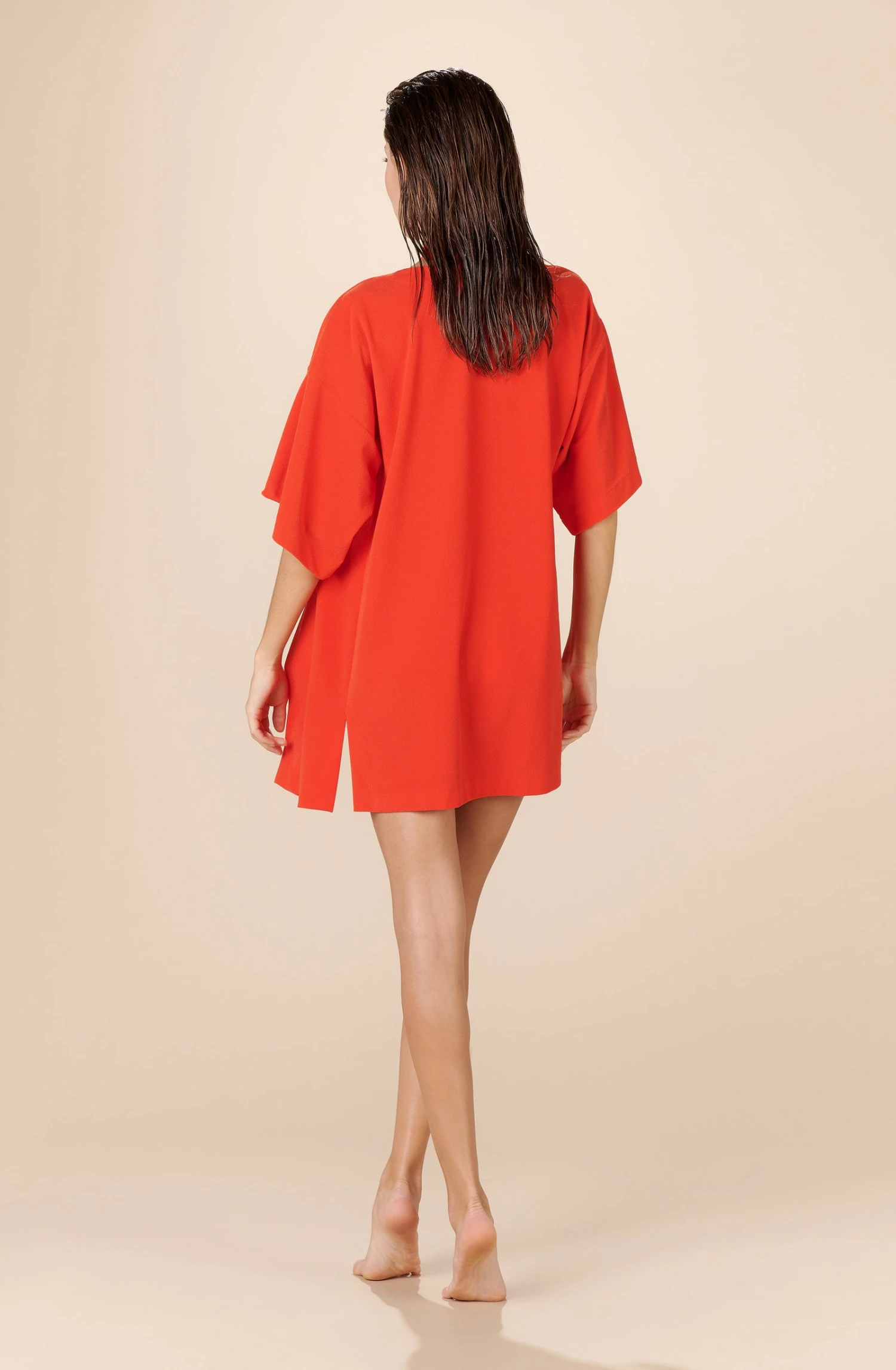 La veste ample VENDA inspire la simplicité et le confort. Son tombé parfait offre une grande aisance de mouvement et son tissu en éponge recyclé est très agréable à porter à la plage comme en ville. Flamboyant, l’orange iconique rappelle le style pop des seventies.